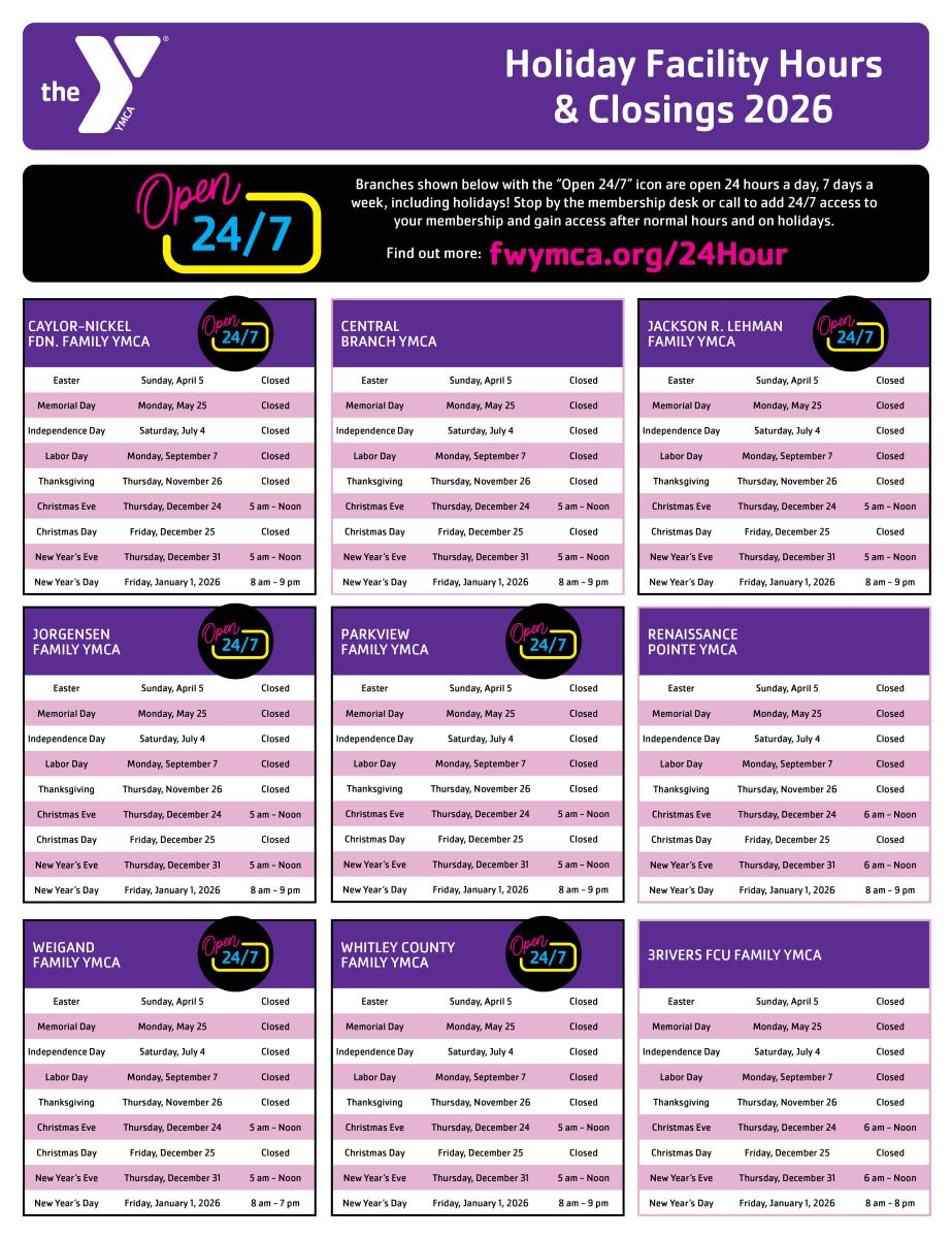 Please call 260.755.4949 or email if you require accommodations to join, register for a program or apply for jobs online. Can't see the content below? Click here. View all YMCA jobs here.